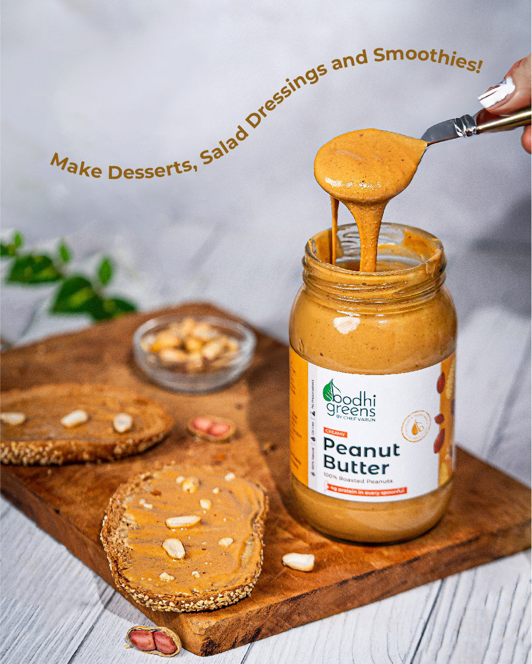 Our homemade Peanut Butter is made of only one ingredient, peanuts, stone ground in small batches for over two hours for a creamy consistency. It's a great source of clean plant protein and good fats. You can use it in smoothies, salad dressings/chutneys, toasts, desserts and more.