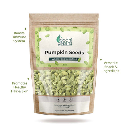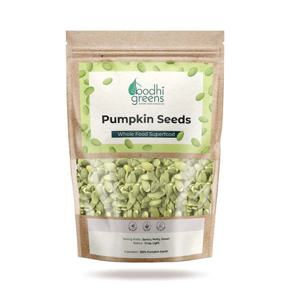 Bodhi Greens' pumpkin seeds are naturally grown and contain a high density of nutrients. They're an incredible source of zinc, clean plant protein, fiber and healthy fats.